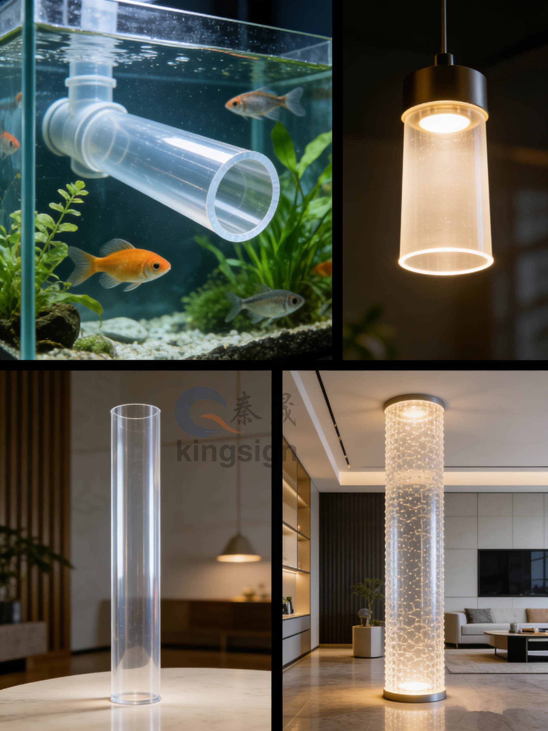 Koningstekenis gericht op hoge helderheid en uniforme wanddikteacryl cilindersdie uitzonderlijke lichttransmissie, sterke slagvastheid en uitstekende weersbestendigheid bieden. Onze acrylbuizen worden veel gebruikt in verlichtingssystemen, architectonische decoratie, medische apparatuur, waterbehandeling, aquariumsystemen en industriële apparatuur en ondersteunen standaard- en aangepaste formaten, kleuren en verwerkingsdiensten, waaronder snijden, boren, flenzen en lijmen.
